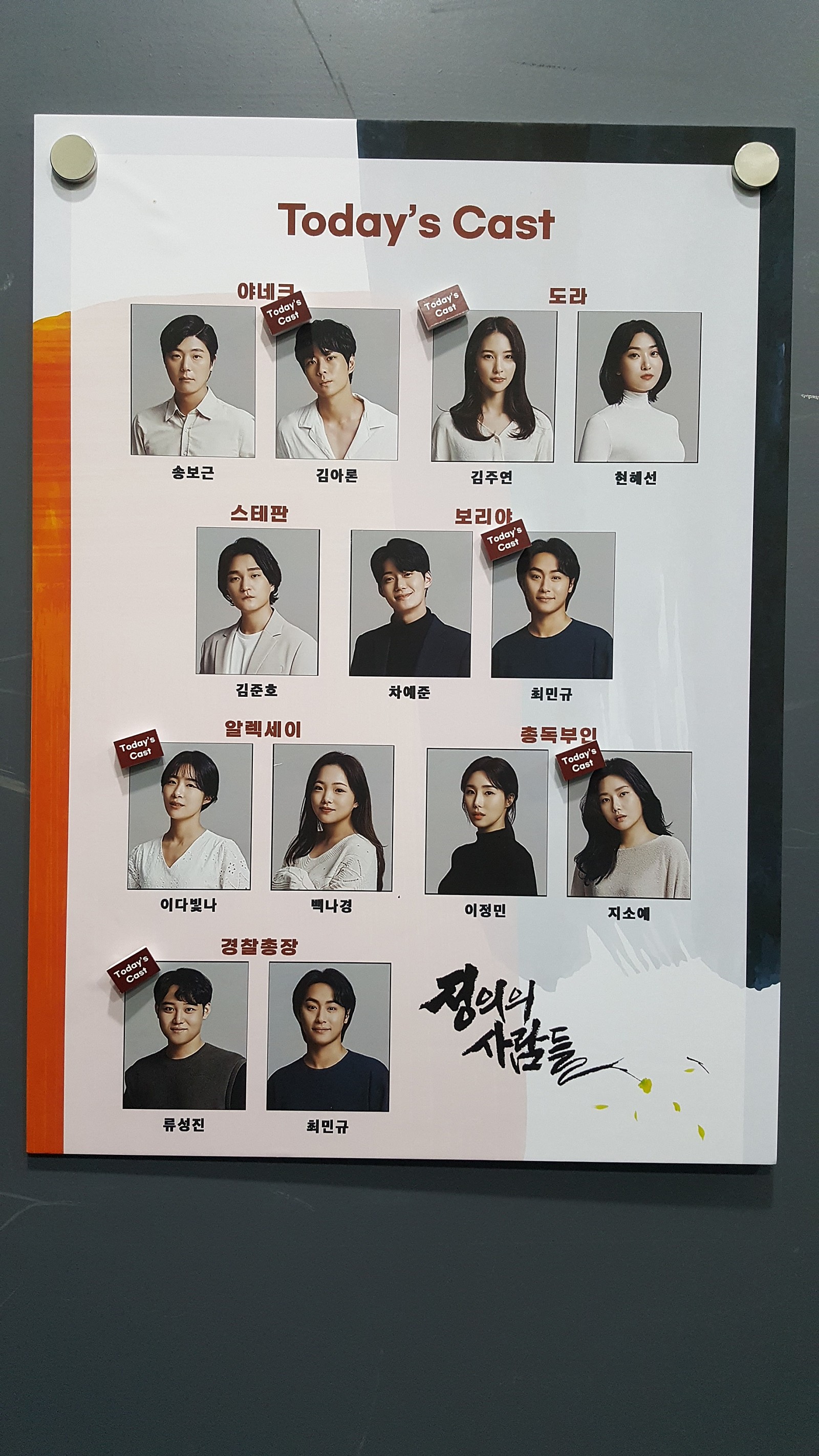 이 작품은 배우들을 연기력을 올리기에 쓴 약이다. 몸에 좋지만 어지간히 노력하지 않으면, 또 사회, 정치, 역사, 철학 등 사전 배경을 공부하지 않으면 몸에 체화되기 힘들기도 할 것이다. 연기에 완숙미를 기대할 수 없지만 일정 부분 배우들은 극을 끌어가면서 지탱하는 성과를 거둔다. 생각해보면 이 작품은 극단이 목표를 어디까지 잡을 것인가, 에 따라 결과물의 진폭이 매우 다를 수 있다. 관객도 마찬가지이다. 정의를 지금처럼 각각 다른 의미로 정의내리고 쓰고 있는 시절이 있을까, 이 작품이 던지는 화두, 부조리 앞에 젊은 혁명당원들의 절규와 결단과 의지를 어떻게 받아들일 것인지 말이다.*