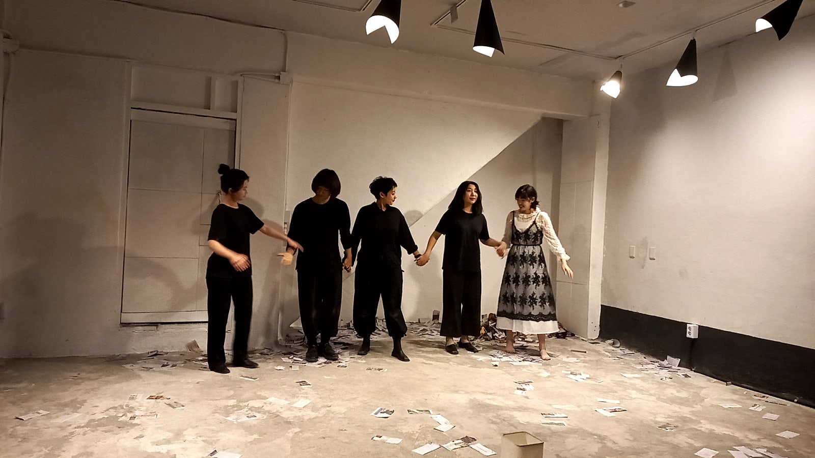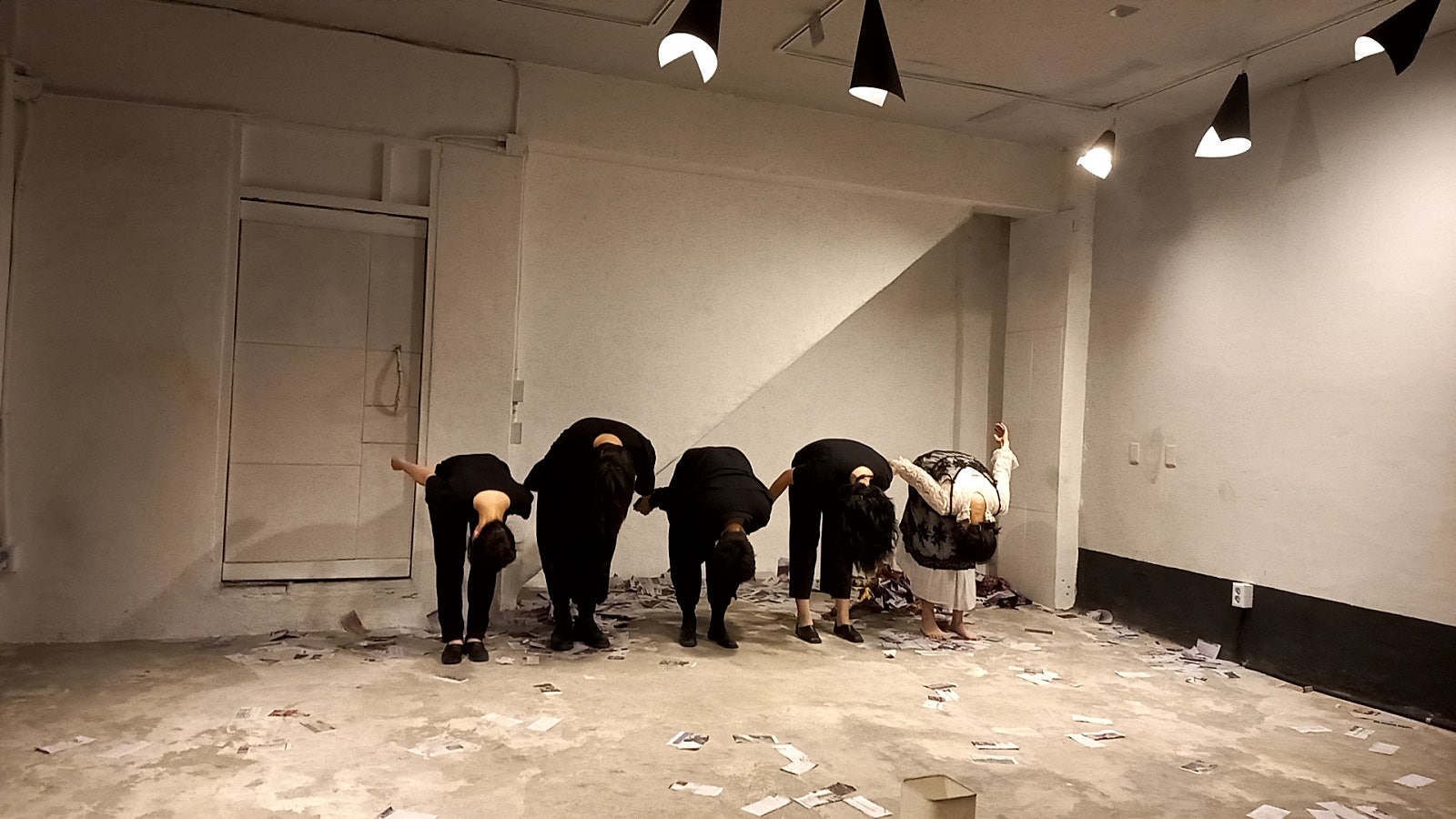 우연히 리뷰를 보고 궁금해서 찾아간 극장입니다. 수유역에서 멀지 않아 찾아 가는 길이 어렵지는 않지만 작은 건물 지하로 들어가는 입구는 눈여겨보지 않으면, 극단 관계자가 밖에 나와 서성이고 있지 않으면 스쳐 지나가도 모를 곳입니다. 극장 내부는 위 인용글 그대로입니다. 레일에 종이로 감싼 전구가 인상적입니다. 사진에서 보는 공간이 주 공연 무대입니다. 다섯 명이 나란히 서면 차는 곳입니다. 하지만 나름 간접 조명 등등 공간을 극에 녹여 영리하게 이용하기도 합니다. 그만큼 공간에 대한 이해, 혹은 애정이 깊다는 의미일 것입니다. 작품을 떠나 그들의 시도가 정말 멋있었습니다. 관람료 1만 원, 연극에 진심인 자세 만으로도 값어치는 충분히 했어요. 동네에 이런 극단이 있다는 건 행복한 일입니다. 부디 극장을 장기 임대한 이상, 오랫동안 유지할 수 있길, 수유연극실험실이 사랑받는 곳이 되길 응원합니다.